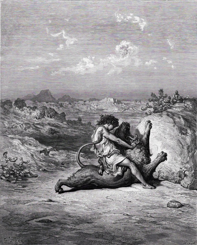 As Samson gave himself into the hands of his betrayers, so Christ gave himself into the hands of his enemies, that he might lift the gates of death upon his back; this was his cross. As Samson stood between the pillars of his enemies so Christ was raised between heaven and earth, and in his death he brought all into his own death, executing kings in the day of his wrath, that a new heaven and new earth might be raised through him, our rod of strength, the head of all things, our last Adam, our redeemer, our life giving spirit. Samson’s enemies may have taken his eyes, but none is so blind like Gods servant (Is 42:19), who darkened all heaven and earth as he tore down every principality and power on which the old creation hung, for all was from him, and all through him, and to Him, and the whole cosmos darkened and died with him.